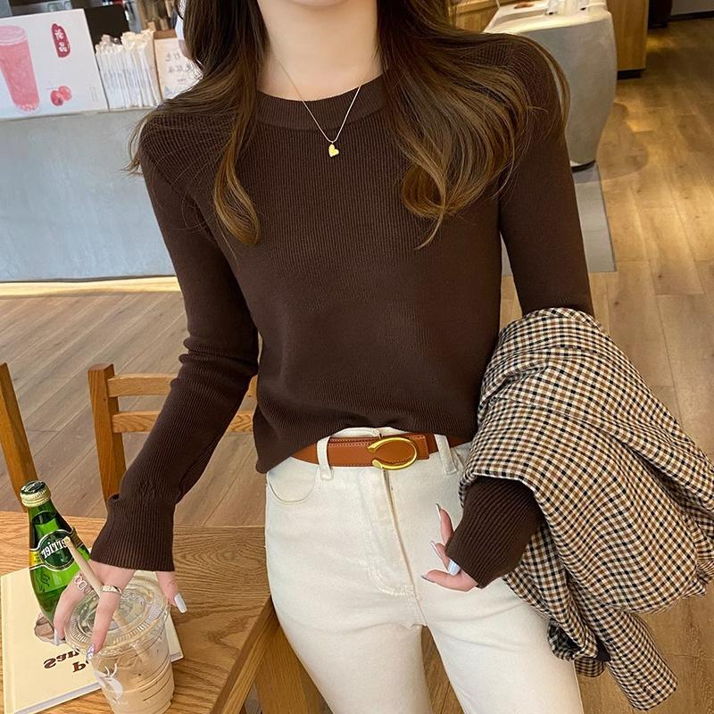 Solid color round neck knitted bottoming shirt women's spring and autumn models high-end simple fashion women's clothing long-sleeved top basic