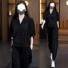 Light luxury, wide and too temperament set, women's clothing color matching short-sleeved top, radish wide-leg pants two-piece set