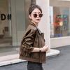 Coffee leather jacket women's short spring and autumn new small retro casual motorcycle jacket leather jacket
