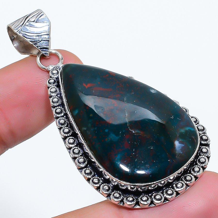 Bloodstone Gemstone Handmade 925 Sterling Silver Jewelry Pendant 2.29" SU-10683