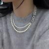Split 8-button Double-layer Stacked Neck Chain Temperament High-end Pearl Sweater Chain Light Luxury Niche Collarbone Chain Accessories
