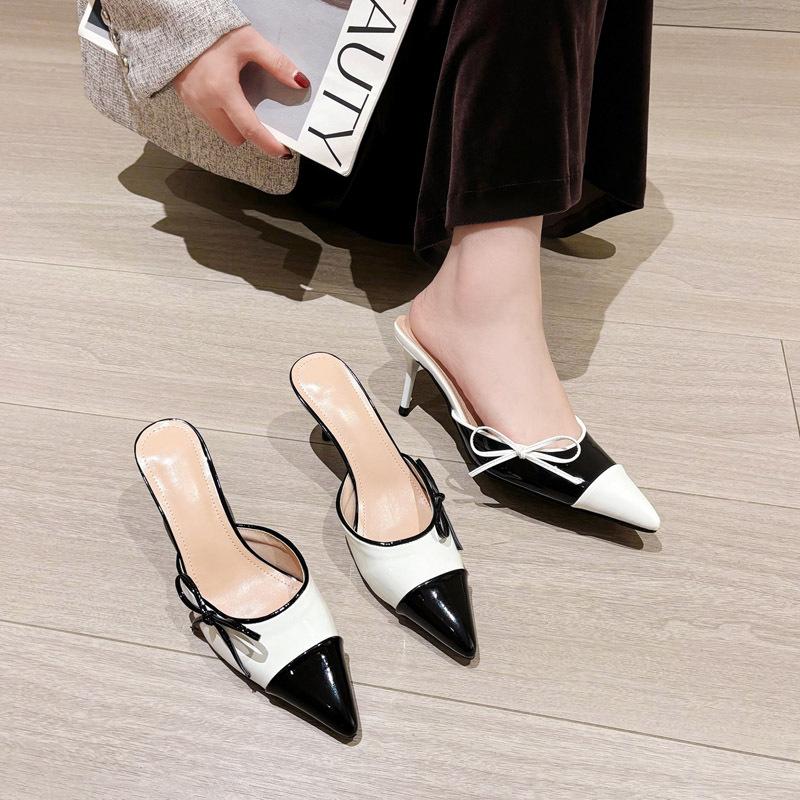 Women's shoes wear spring sweet bow high heel cool slippers lazy pedal high heels slippers