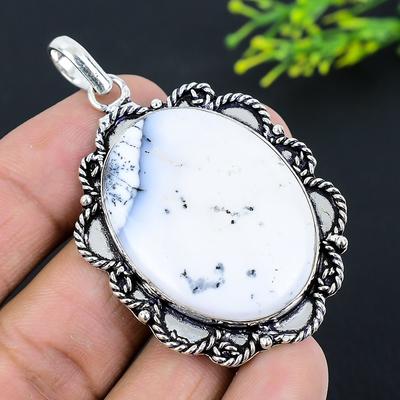Dendrite Opal Gemstone Handmade 925 Sterling Silver Jewelry Pendant 2.29" KKG-727