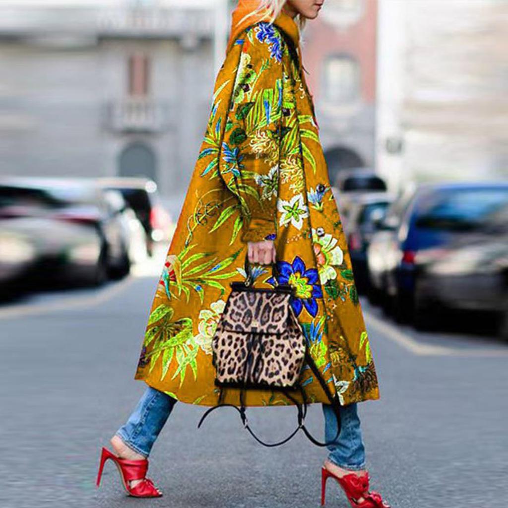 Μόδα Γυναικεία εμπριμέ σακάκι τσέπης Ζακέτα πανωφόρι μακριά καμπαρντίνα