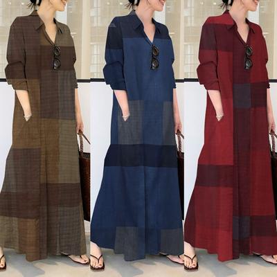 Γυναικείο φόρεμα casual από βαμβακερό λινό εμπριμέ Loose Temperament Μακρύ Πουκάμισο