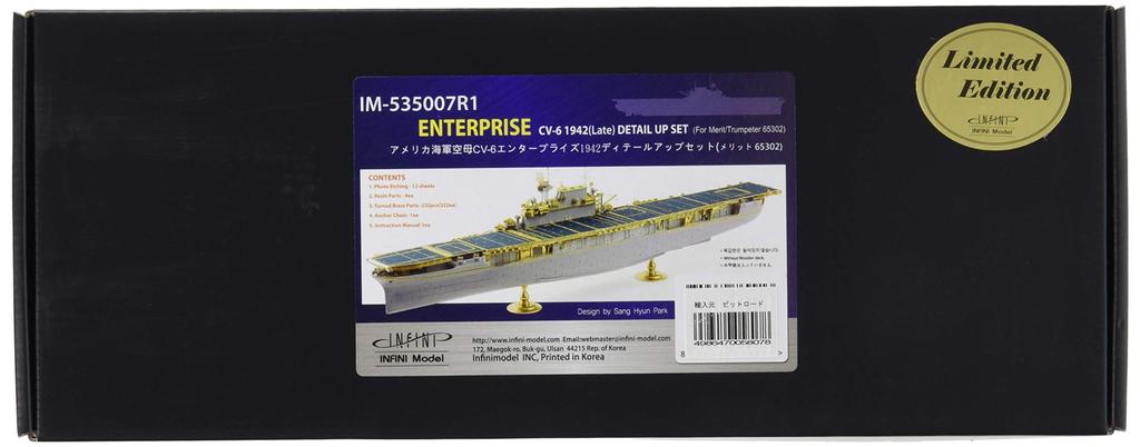 Infinimodel scale detail set for the US Navy aircraft carrier Enterprise featuring etching and brass lathe parts for ME plastic models 1/350 (1942),