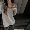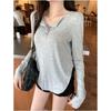 Ψεύτικο Δύο Κομματιών Πουλόβερ με Μπαλώματα Γυναικεία Ρούχα Casual Μακρυμάνικο Άνοιξη Φθινόπωρο Κορεάτικο Μονόχρωμο Όλο-ταιριάζει T-shirt με Λαιμόκοψη V