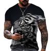 Men's T Shirt 3D Digital tiger Print Short Sleeve T-Shirts Comfy Casual Elastic Crew Neck Men Outdoor Activities Top