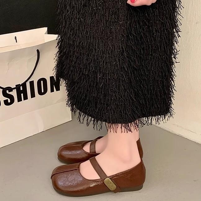 2025 new late evening wind small single shoes women's spring flat bottom with skirt Mary Jane shoes soft sole French beanie shoes
