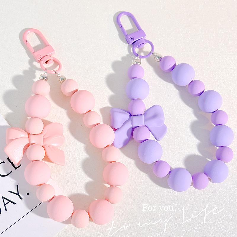 Pink Pearl Bow Keychain Beaded Pendant Anti-Lost Rope Mobile Phone Chain Earphone Bag Car Keychain Backpack Accessory