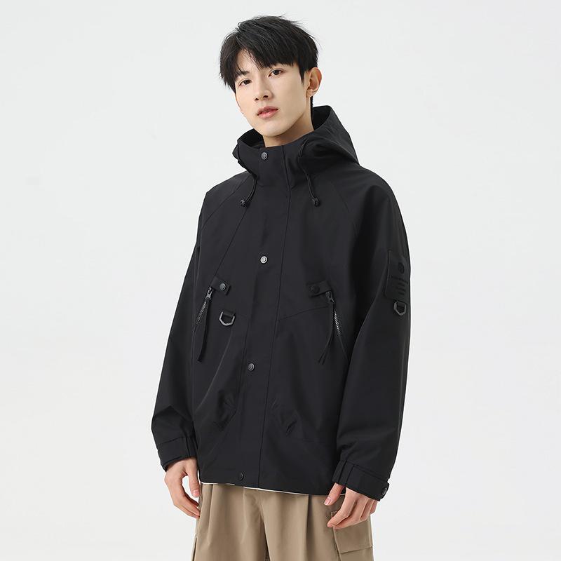 Outdoor Waterproof Hooded Spring Japanese Velcro Badge Couple Work Jacket Men Zipper