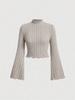 Long Sleeve Crop Top Phumee Mock Neck Flared Sleeves Rib-knit A1814