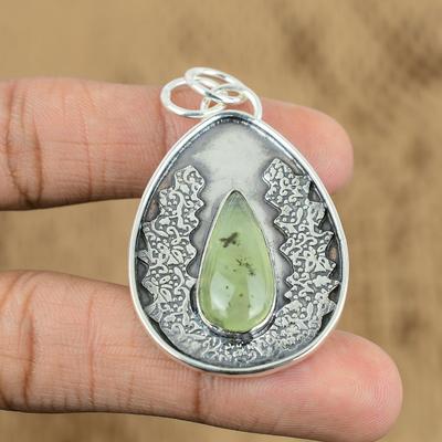 Φυσικό Πρεχνίτης Λίθος Κρεμαστό 925 Ασήμι Στερεό Ινδικό Κόσμημα Για Γυναίκες