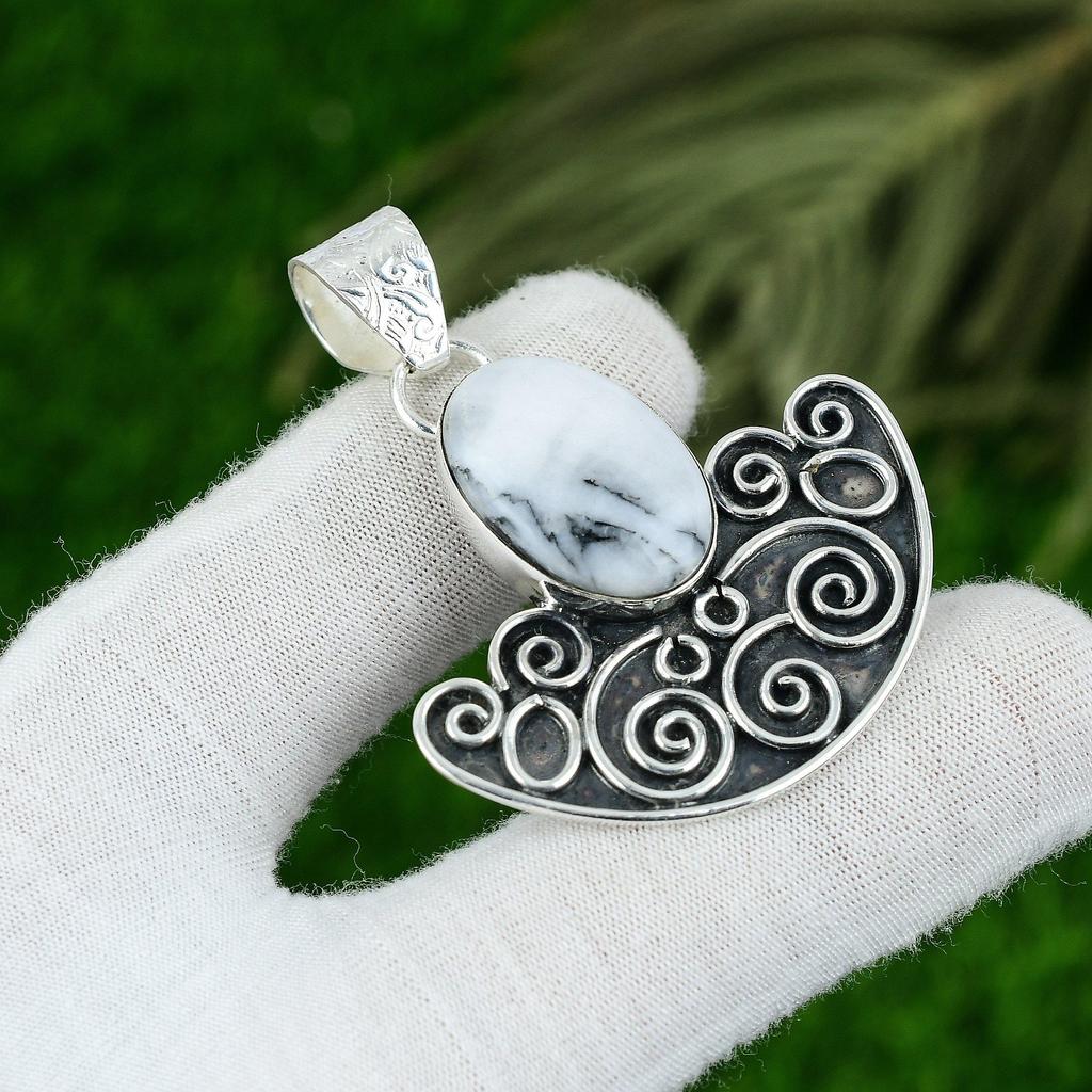 Natural Zebra Jasper 925 Sterling Silver Bezel Ethnic Artisan Engagement Pendant
