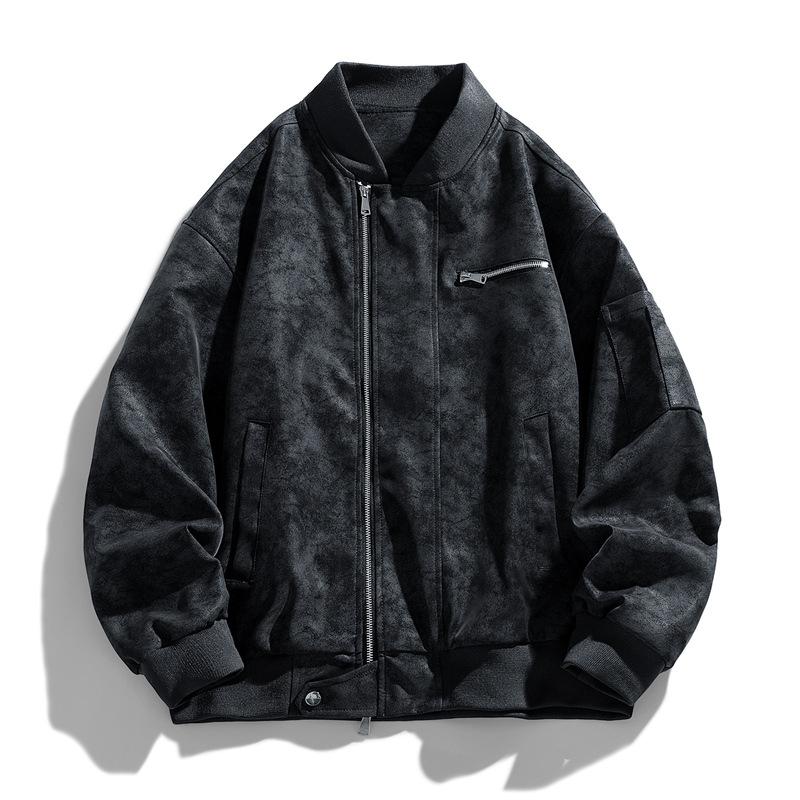 Αμερικάνικο Μπουφάν Μπέιζμπολ Μοτοσικλέτας, Μπουφάν από Πλυμένο Δέρμα, Ανδρικό Ανοιξιάτικο και Φθινοπωρινό Χαλαρό Πιλοτικό Μπουφάν με πέτο