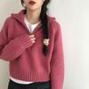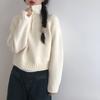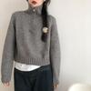 Women's Short-Length Korean-Style Half-Zip High Neck Sweater Autumn Winter Loose Lazy-Style Thickened Knitted Top
