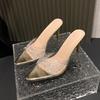 Transparent rhinestone fine heel sandals new spring and summer new solid color pointed high heel slippers women