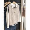 Women's Gray Cardigan Knitted Vest Sleeveless Top Korean Style Sweater for Spring Autumn and Winter