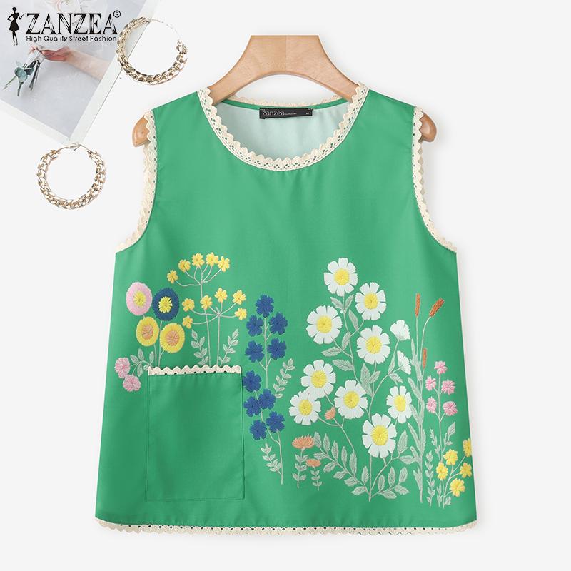 ZANZEA Women Casual Round Neck Summer Sleeveless Print Vest Tops