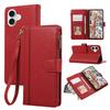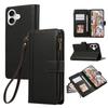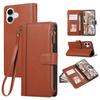 For iPhone 17 Case Multi Card Slots Zipper Leather Phone Cover with Wrist Strap
