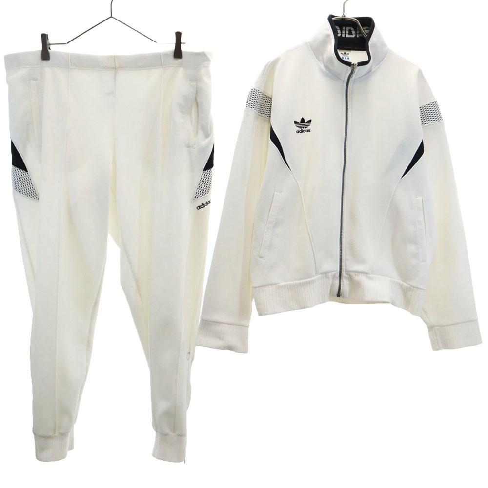These are Adidas pants made by Descente between 1983 and 1990. There are stains and snags in places, the ribs are wrinkled, and the waistband is stretched out. Please understand that these are used items before purchasing.