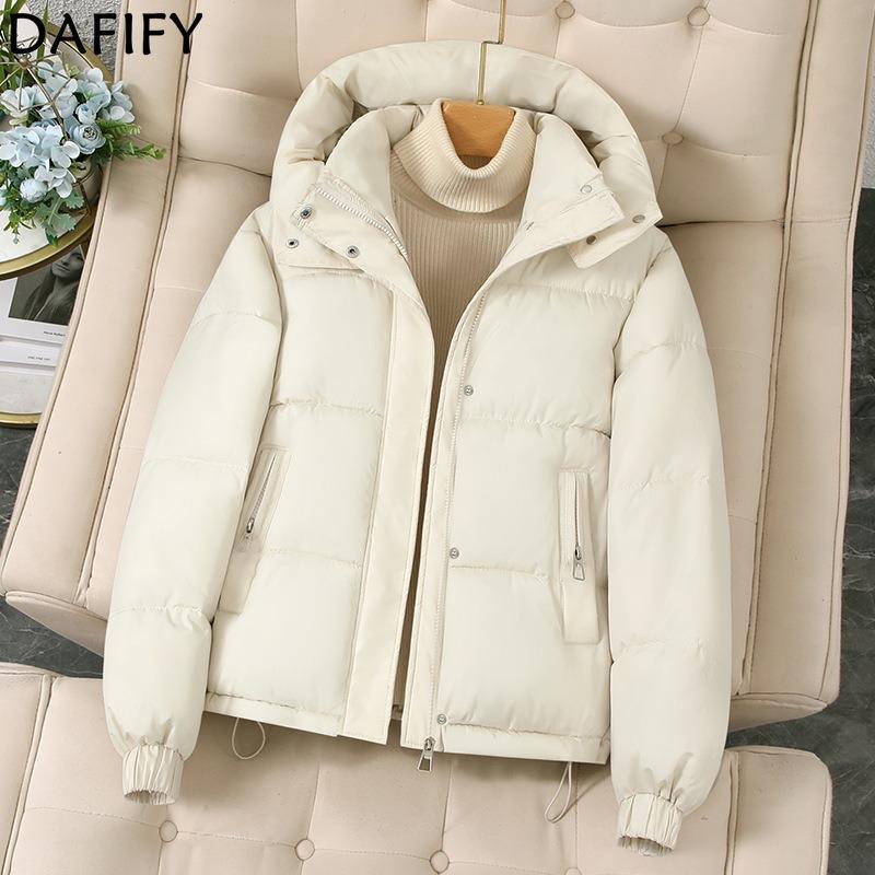 DAFIFY Γυναικεία μόδα casual φθινόπωρο χειμώνα μονόχρωμη στάμπα μακρυμάνικα μπουφάν και παλτό πουπουλένια παλτό