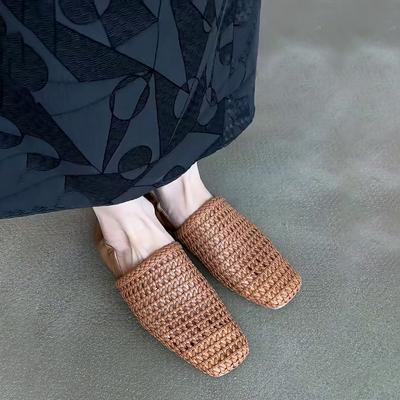 Soft sheepskin~ Hollow-woven breathable bag head half-dragging girl wearing summer fairy temperament cool slippers