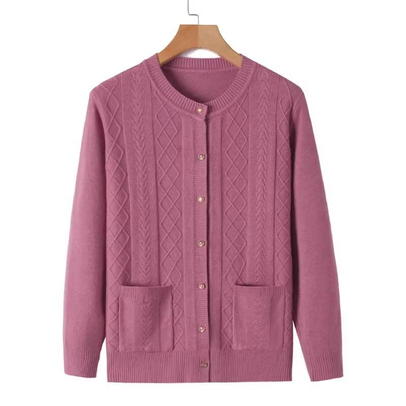 Μαλακές Πλεκτές Μπλούζες Ηλικιωμένων Γυναικών Μέσης Ηλικίας Άνοιξη Φθινόπωρο Μονόχρωμη Κομψή Ζακέτα Καρντιγκάν Εξωτερικά Ρούχα Τοπ Μητέρα