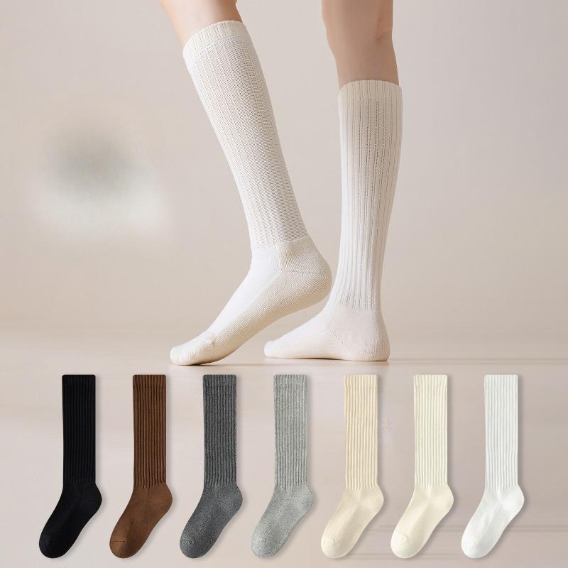 Female Spring and Autumn New Style Leisure All Match Solid Color Boneless Calf Pile Socks