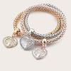 3-Color Women's Fashion Elastic Corn Chain Heart Pendant Bracelet Set, Suitable for Date, Travel, Party, Festival Dress Gifts