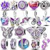 925 χαλκός Μωβ Σειρά Χάντρες Κλιπ Λουλούδι Καρδιά Αστέρι Στοιχεία Μενταγιόν Πεταλούδα Σταφύλια Κρεμαστά Ταιριάζουν σε Πρωτότυπο Βραχιόλι Bangles Ζιργκόν Δώρο