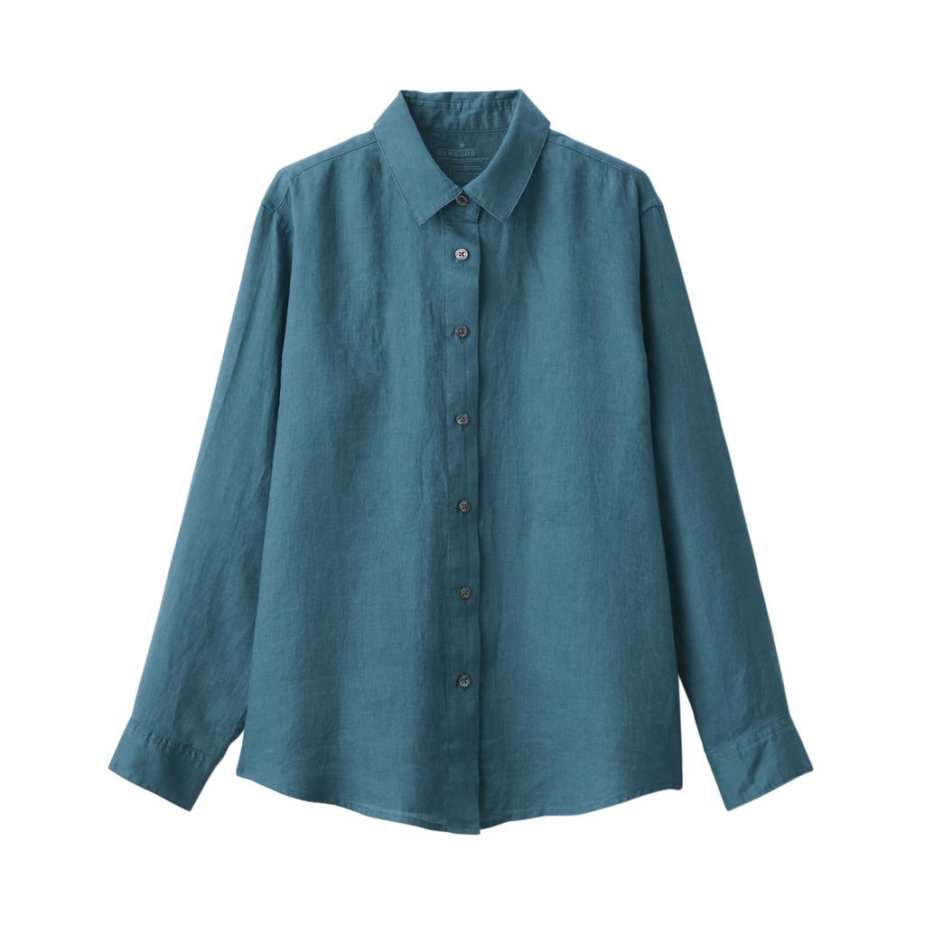 MUJI Washed Linen Regular Collar Long Sleeve Smoky Size BC2ISA4S Women's Shirt, Green, S,