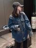 Contrasting color lapel blue outer denim shirt jacket women's spring and autumn new temperament casual versatile cardigan top