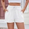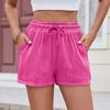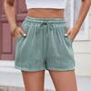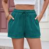Women's Fashion Solid Color Drawstring Pocket Casual Shorts
