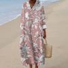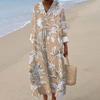 Γυναικείο Casual Μόδα Μακρύ Φόρεμα Μάξι με V Λαιμόκοψη και Μακρύ Μανίκι με Φλοράλ Μοτίβο