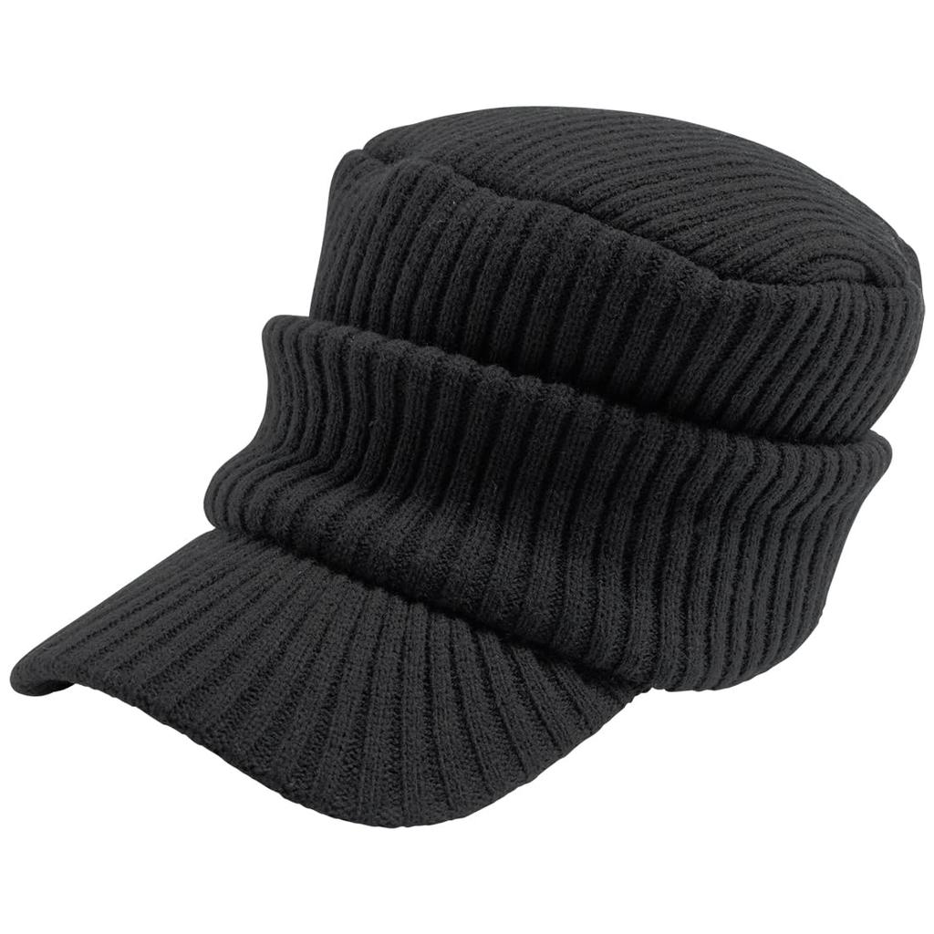 Ribbed Knit Cap with Loose Unisex Knit Newsboy Cap with Free Size Black Loo&c Men's Brim, Fit, Earmuffs, (56-64cm) -