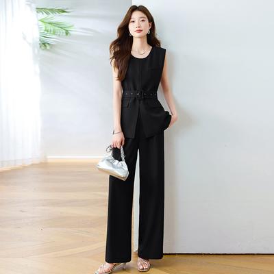 Kochi Stylish Heavy-Duty Beaded Sleeveless Vest & Wide-Leg Pants Set - Tall & Slimming Two-Piece