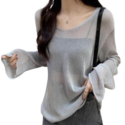 Narebualo Cietupoop Μακρυμάνικο Καλοκαιρινό Χαλαρό Δαντελωτό Πλεκτό UV Αντηλιακό Κλιματισμός Μονόχρωμο Που Δείχνει Δέρμα Γυναικείο Πουλόβερ, Πλεκτό, Εφαρμογή, Μπλούζα, Διχτυωτό,