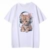 Women's Cute Cat Print Short Sleeved Cotton T-shirt Women's Harajuku Fashion Couple Loose Fitting Retro Street Style Clothing