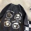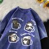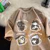 Cat Coffee Pure Cotton Trendy Summer Loose Short Sleeved T-shirt Men Women Mocha Latte Cat Vintage Water Washing Fun Cat Tees
