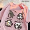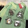 American Style Coffee Cat Print T-Shirts Man Casual Cotton T-Shirt Summer Breathable Tee Clothing Casual Loose Male T-Shirts