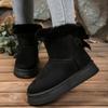 Winter new velvet thickened large size snow boots thick bottom fluffy mouth bow warm short boots women