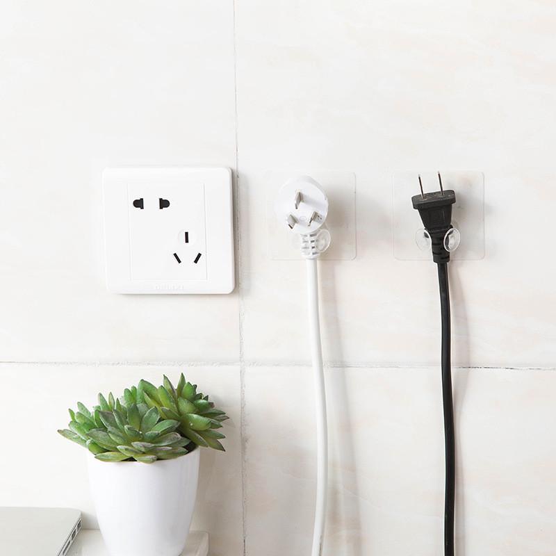 4Pcs Home Office Wall Adhesive Plastic Power Plug Socket Holder Hanger Hook