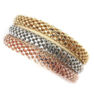 Triple Strand Omega Snake Cobra Wide Bangle Twist Bracelet Band Set Interlocking Flexible Stretch Bracelet for Yellow Gold Plated Stainless Fits Inch