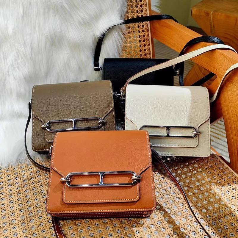 Leather women's bags are elegant, fashionable and high-end tofu bags, simple and versatile single shoulder messenger small square bags.