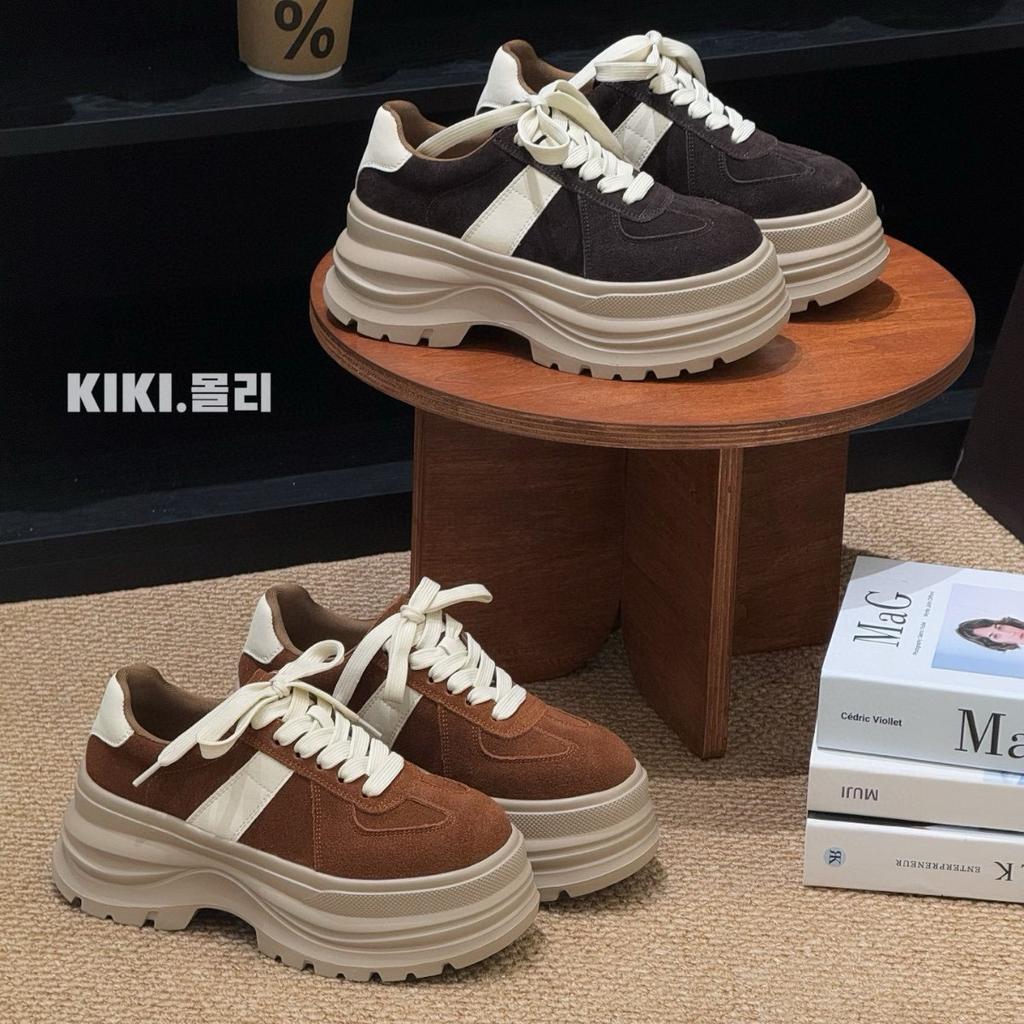 Ευρωπαϊκός σταθμός γυναικεία παπούτσια Ευρωπαϊκά εμπορεύματα παλίρροια 2025 φθινόπωρο νέα δέρμα ματ δέρμα αθλητικά και αναψυχής παπούτσια υπερυψωμένα παπούτσια με χοντρή σόλα