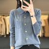 Autumn New Polo Neck Sweater Cardigan Button Niche Design Outside Wear Long Sleeve Knitted Bottom Top