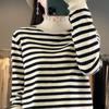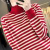 24 Spring Striped Semi-turtleneck Knitted Shoulder Sleeve Bottom Shirt Loose Versatile Pullover Long Sleeve Top