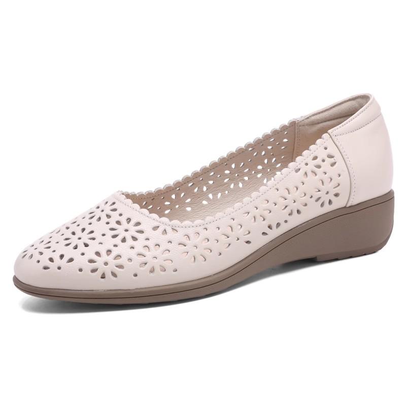 Fashion GKTINOO White Genuine Leather Ladies Breathable Summer Shoes Women Flats Slip-On Loafers Round Toe Soft Flat Shoes Casual