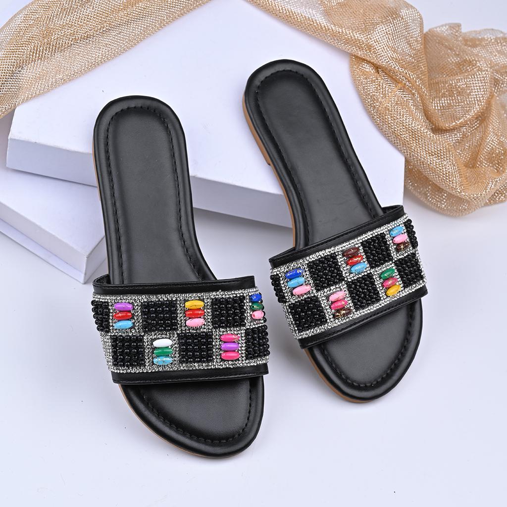 Fashion Women's Rhinestone Slippers 2025 Summer Outdoor Fashion Non-Slip Beach Shoes Comfortable Flat Square Heel Women's Sandals